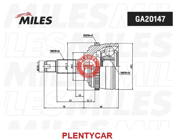 - GA20147 - ШРУС наружный HONDA CIVIC 2.0D 97-01 (с ABS) (GSP 823002) GA20147 - MILES
