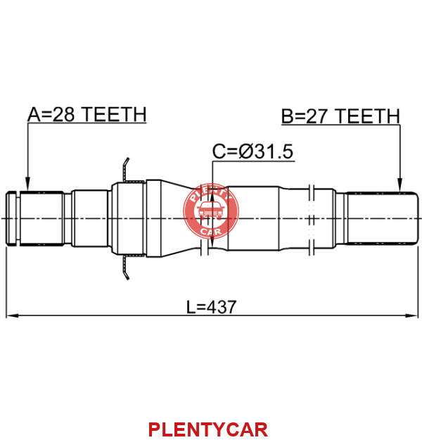 ПОЛУОСЬ ПРАВАЯ 27X437X28 FEBEST 1212TL6AT