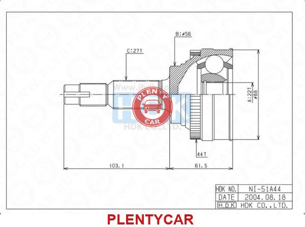 - "ШРУС наружн с кольцом ABS Nissan" - "NI-51A44 " - "HDK" - "шт." - "1"