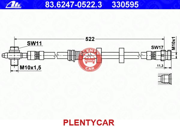 - "Шланг тормозной" - "83-6247-0522-3 " - "ATE" - "шт." - "1"
