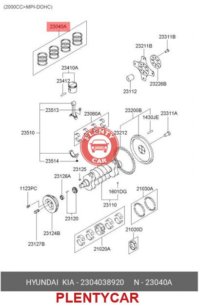 КОМПЛЕКТ ПОРШНЕВЫХ КОЛЕЦ (12ШТ) HYUNDAI / KIA (MOBIS) 2304038920