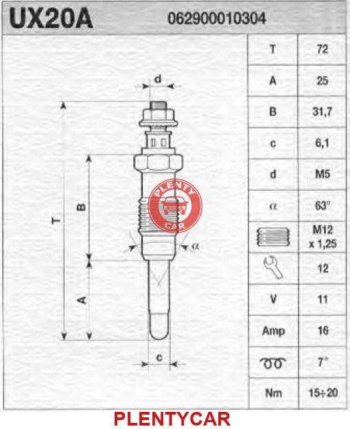 - MAGNETI MARELLI - 062900010304 - UX20A Свеча накалив.Citroen Berlingo 1.8D,1.9 98-/XANTIA 98-03//PEUGEOT//SUZUKI