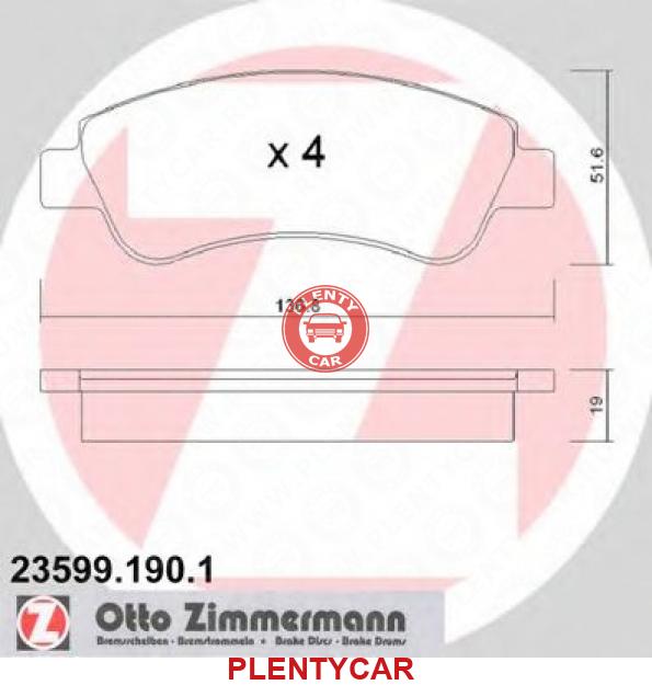 - ZIMMERMANN - 23599.190.1 - Колодки торм.пер. - 0986494027, 235990070100, 235991901, 425218, 425221, 425238, 425239, 425240, 425259, 425276, 425330, 425338, 425341, 425342, 573030JAS, 598464, 84020, FSL1399, GDB1463, GDB1563, GDB1677, LP1727, NK223741, P61066, SP1241, - CITROEN Berlingo 1.1-2.0 96->, Xsara 1.4-2.0 97-05, PEUGEOT 1007/206/207/307 1.4-2.0 99->