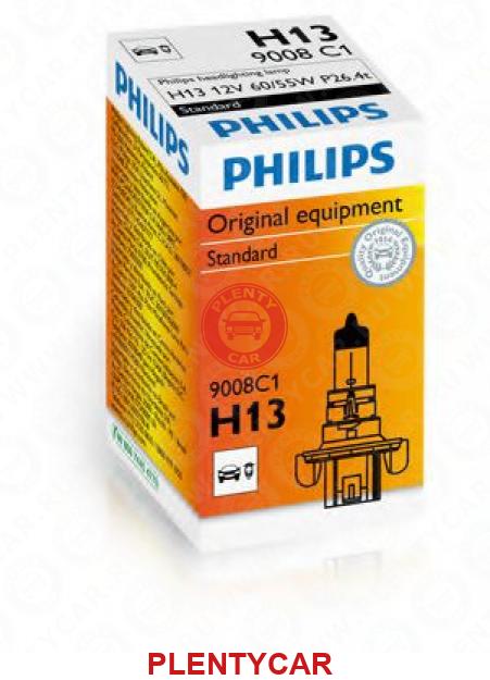 - Philips - 9008C1 - Лампа галогенная H13 12V 60/55W - 9008; 9008; H9008; L0000H13; 04806096AA; 4806096AA - любая модель 1980-2010