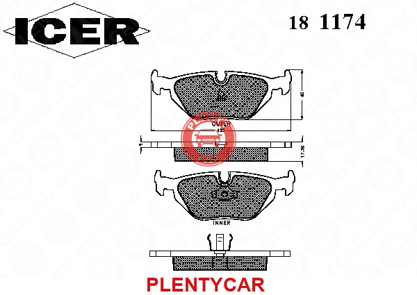 - ICER - 181174 - 181174_колодки дисковые задние!\ BMW E46 1.6i-2.8i/D 98>,Rover 75 1.8-2.5/CDT 99>