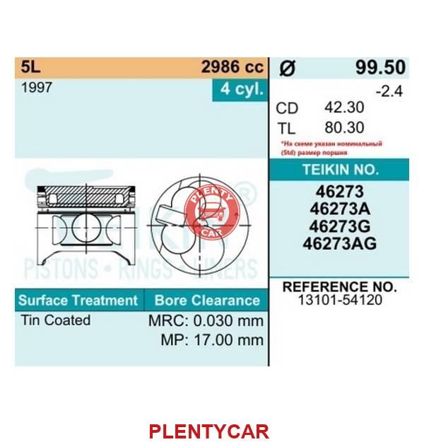 - TEIKIN - 46273AG STD - Поршни без колец Toyota 5L d99.5 STD Teikin (на 4 цил)