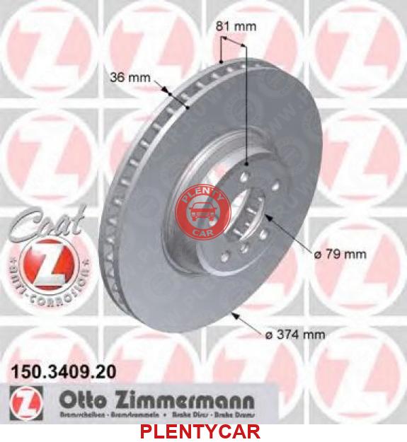 - ZIMMERMANN - 150.3409.20 - 150.3409.20_диск тормозной !перед. 374x36/81-5x120 \BMW 7 745 d 05>05, 05>08, 760 i, Li 03>08