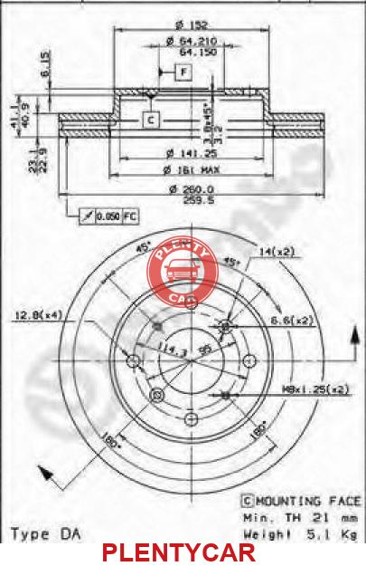 - Тип тормозного диска: с внутренней вентиляцией