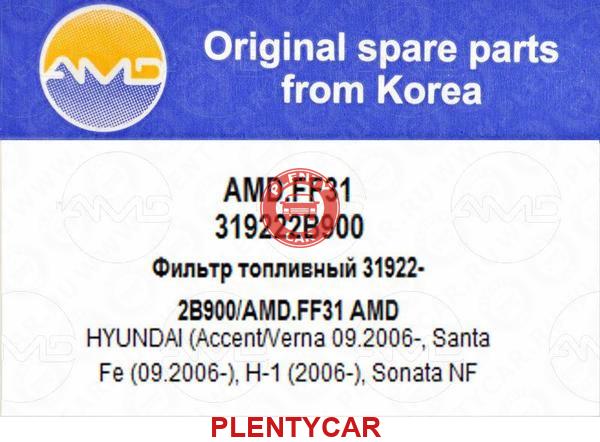 - AMD - AMD.FF31 - Фильтр топливный 31922-2B900/AMD.FF31 AMD HYUNDAI (Accent/Verna 09.2006-, Santa Fe (09.2006-), H-1 (