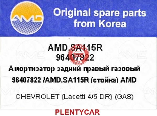 - AMD - AMD.SA115R - Амортизатор задний правый газовый (стойка) - 29-267230001 + 30-H82-A + 313469 + 333419 + 3351DG + 383532EGT + 8731305 + 96407822 + 96407822 + A-3658GR + A62121 + EX96394592 + EX96407822 + G32842R + G7289 + GSAD053 + KSA037 + N5530904G + NP313033 - 96407822 - CHEVROLET