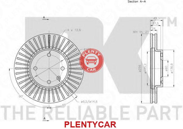 Торм.диск пер.вент.[256x24] 4 отв. min2 NK 205019