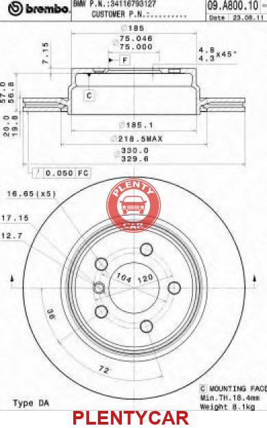 - BREMBO - 09.A800.11 - Диск тормозной задний - - 34216793127 - BMW