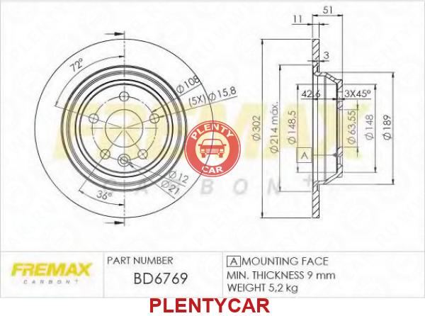- FREMAX - BD-6769 - Диск торм. зад.[302x11] 5 отв.(MIN2) - 494044 - FORD Galaxy II 06->/Kuga 08-->/ Mondeo IV 07-->/ S-Max 06->