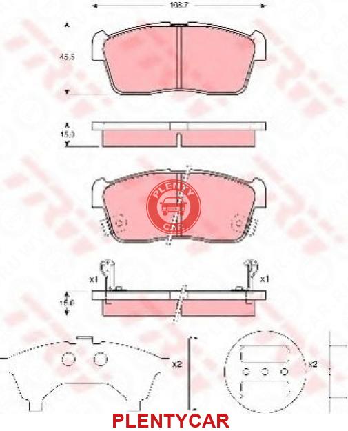 - TRW - GDB3236 - Тормозные колодки - J3608024 + FDB1532 - 5581076A10 + 5581080G00 + 5581080G01 + 5581080G04 + 5581080G10