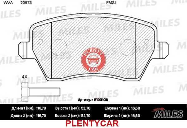 - MILES - E100108 - Колодки тормозные Lada Largus (-ABS), Vesta; Renault Duster, Logan 08-; Nissan Almera 12- передние M