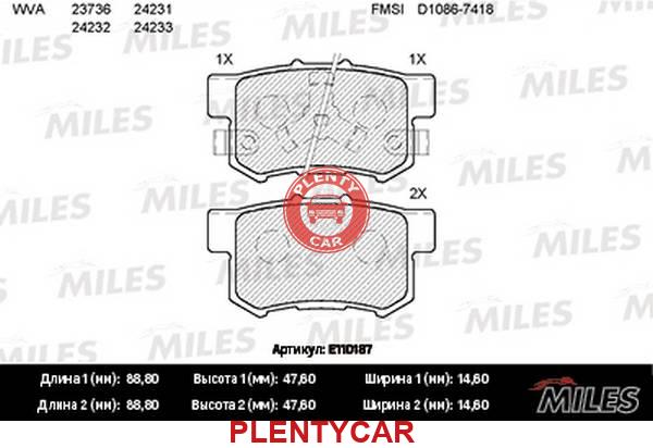 Колодки тормозные MILES E110187 GDB3438 ACCORD 08- зад MILES E110187