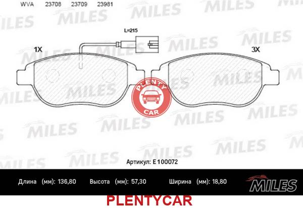 - Miles - E100072 - Комплект тормозных колодок, дисковый тормоз