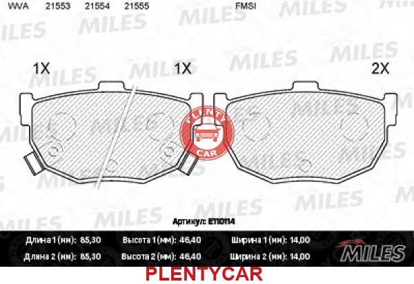 - Miles - E110114 - Комплект тормозных колодок, дисковый тормоз