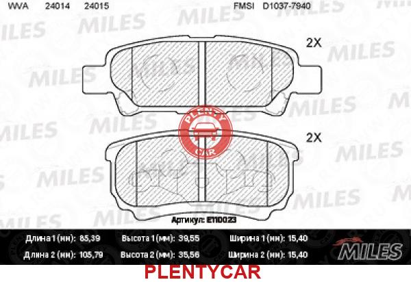 - E110023 - Колодки тормозные задние (без датчика) (Смесь Semi-Metallic) MITSUBISHI LANCER IX 03OUTLANDER 0308 (TRW GDB3341) E110023 - MILES