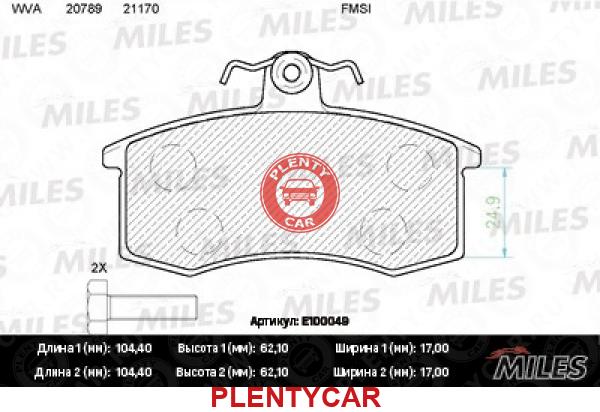 - MILES - E100049 - MILES E100049 КОЛОДКИ ТОРМОЗНЫЕ ВАЗ 2108/2109/21099 ПЕРЕДНИЕ