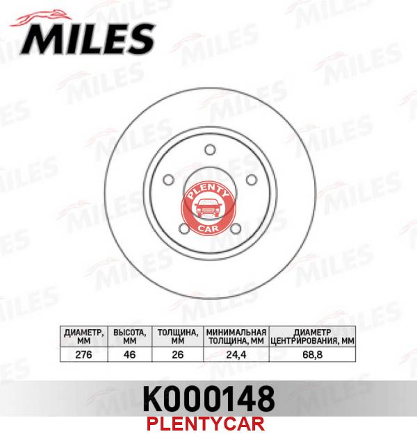 - MILES - K000148 - Диск тормозной MILES K000148 MITSUBISHI LANCER 08-/DODGE CALIBER 06- передний вент.D=276мм.