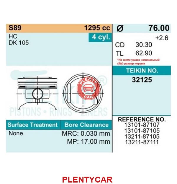 - TEIKIN - 32125 STD - Поршни (к-т 4шт) STD - 13101-87107 - HCEJ CAMI `99-`00 76/1,2/1,5/3 d=19