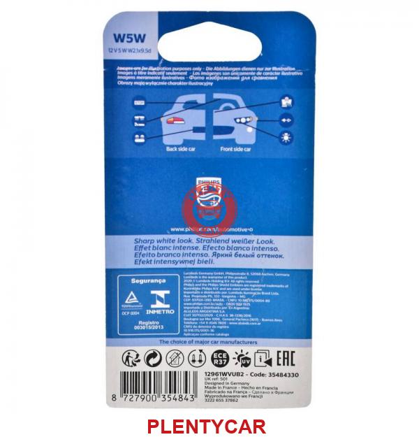 - 12961WVUB2 - Лампа W5W 12961 WVU 12V B2 12961WVUB2 35484330 - PHILIPS