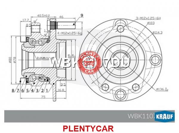 - Krauf - WBK1107DU - Ступица в сборе NISSAN [перед, Kit] Tiida (C11,SC11X)/Bluebird Sylphy II (G11)/Cube (Z12) WBK1107DU