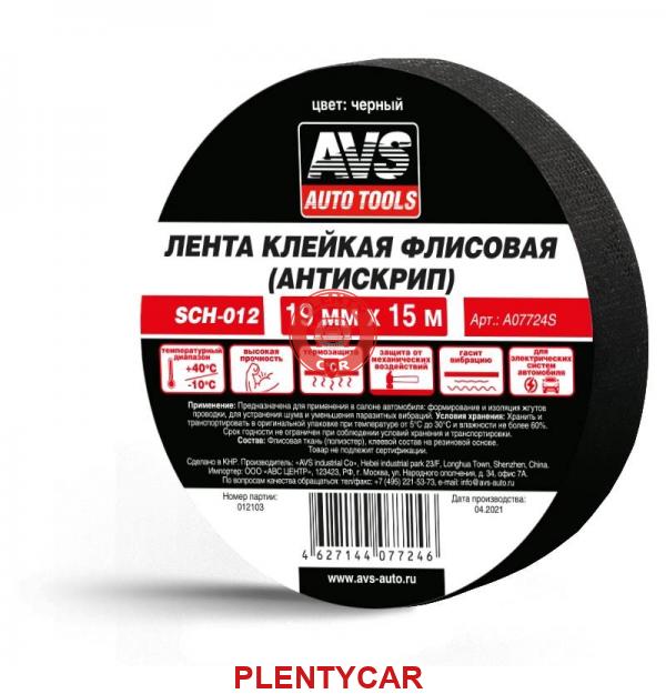 - AVS - A07724S - Лента клейкая флисовая (антискрип) AVS SCH-012 19 mm x 15 m (чёрный)