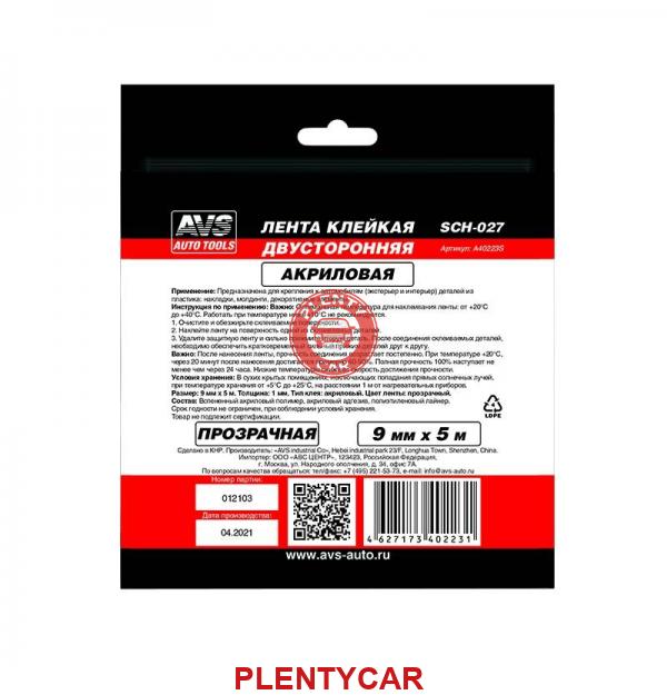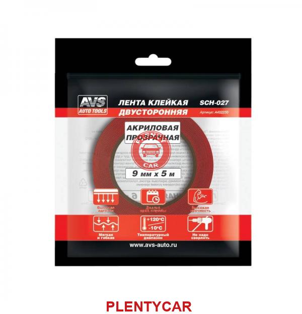 - AVS - A40223S - Лента клейкая двусторонняя AVS SCH-027 9 mm x 5 m акриловая основа (прозрачная)