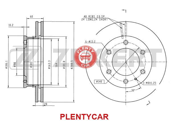 Диск тормозной Mazda B-Serie IV 99-, BT-50 06- передний вентилируемый 288,7 х 28 Zekkert