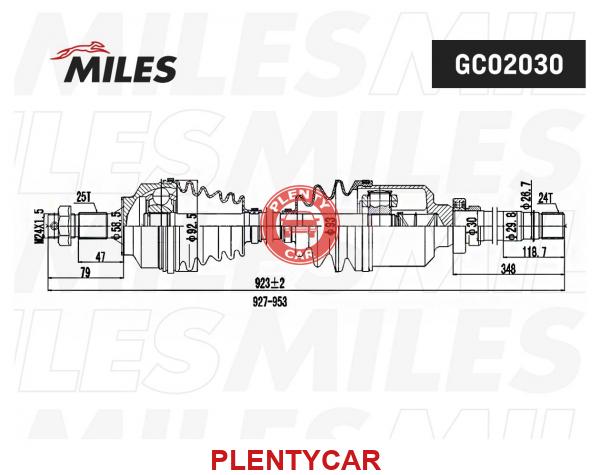 - MILES - GC02030 - Привод Citroen Berlingo 08- / C4 04- /Peugeot 307 00- /Partner I прав 953мм MILES