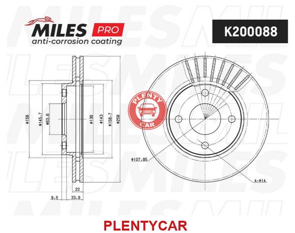 - Miles - K200088 - Диск тормозной (серия PRO с антикоррозионным покрытием) FORD FOCUS 9805/FUSION 1.4/1.6 01 передний вентилируемый K200088