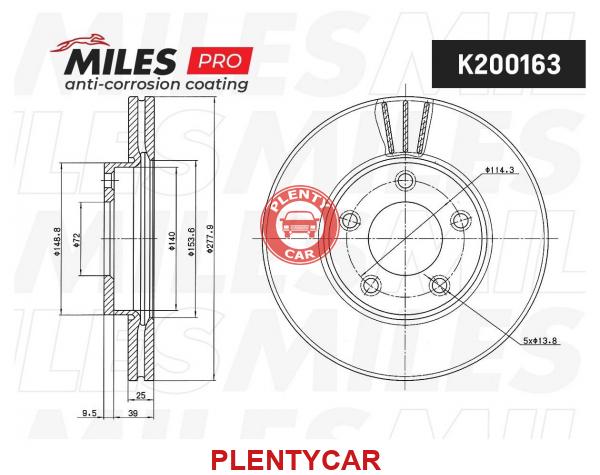 - MILES - K200163 - Диск тормозной Mazda 3 1.4/1.6 03-. Mazda 5 15 1.8/2.0/2.0D 03- передний вентилируемый Miles PRO