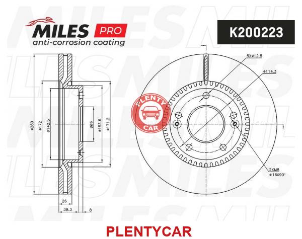 - MILES - K200223 - Диск тормозной Hyundai Tucson 06-, i30 09-; Kia Ceed 06-, Sportage 04- передний Miles PRO