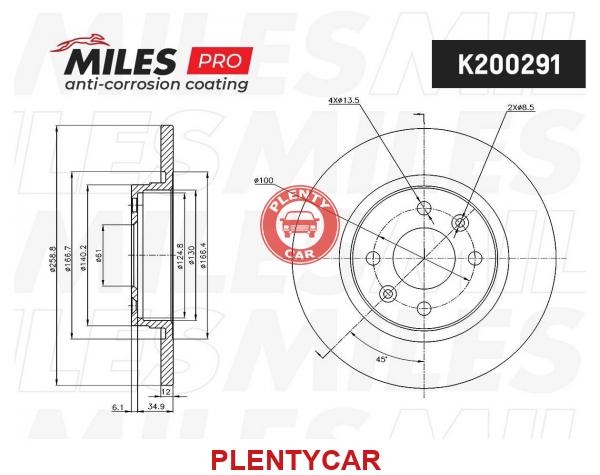 - Miles - K200291 - Диск тормозной (серия PRO с антикоррозионным покрытием) RENAULT LOGAN/SANDERO передний не вент.D259мм. K200291