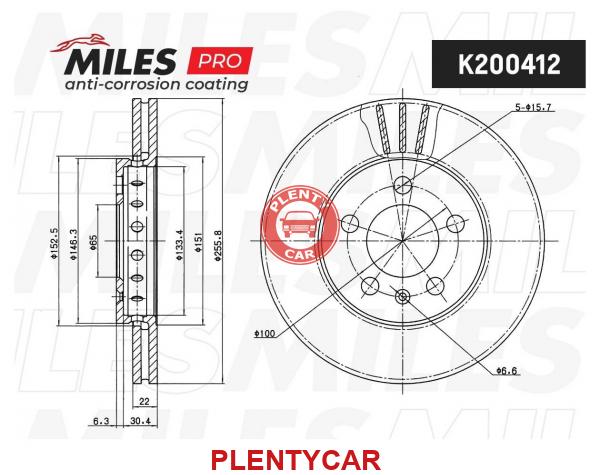 - Miles - K200412 - Диск тормозной (серия PRO с антикоррозионным покрытием) AUDI A2/A3/VW GOLF IV/V/SKODA FABIA/OCTAVIA передний вент.D256мм K200412
