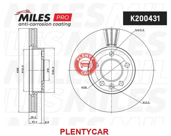- MILES - K200431 - Диск тормозной VW Multivan, T5 03-, Touareg 02-10 передний D=308 мм Miles PRO