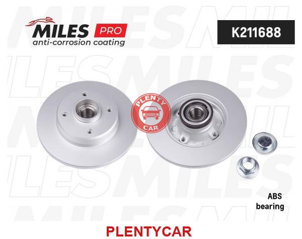 - MILES - K211688 - Диск тормозной CITROEN C3/DS3 09->PEUGEOT 207/307 03-> задний с подшипником Miles PRO