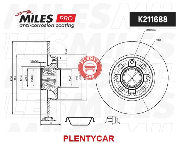 - Miles - K211688 - Диск тормозной (серия PRO с антикоррозионным покрытием) CITROEN С3/C4/PEUGEOT 207/307 задний с подш. K211688