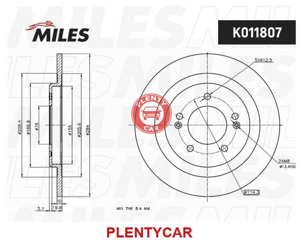 - MILES - K011807 - Диск тормозной HYUNDAI i40 R16 задний D=284мм.
