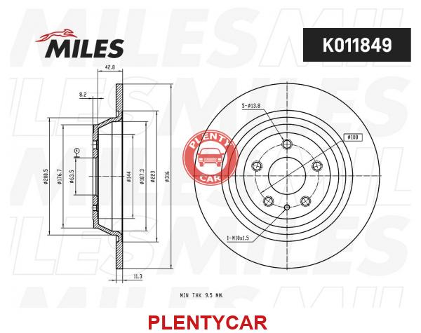 - Miles - K011849 - Диск тормозной FORD KUGA 13-/MONDEO 14- задний D 316мм. K011849