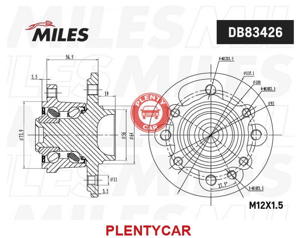 - MILES - DB83426 - Ступица с подшипником MINI ONE/COOPER/CLUBMAN -06 зад. ABS (M12X1.5)